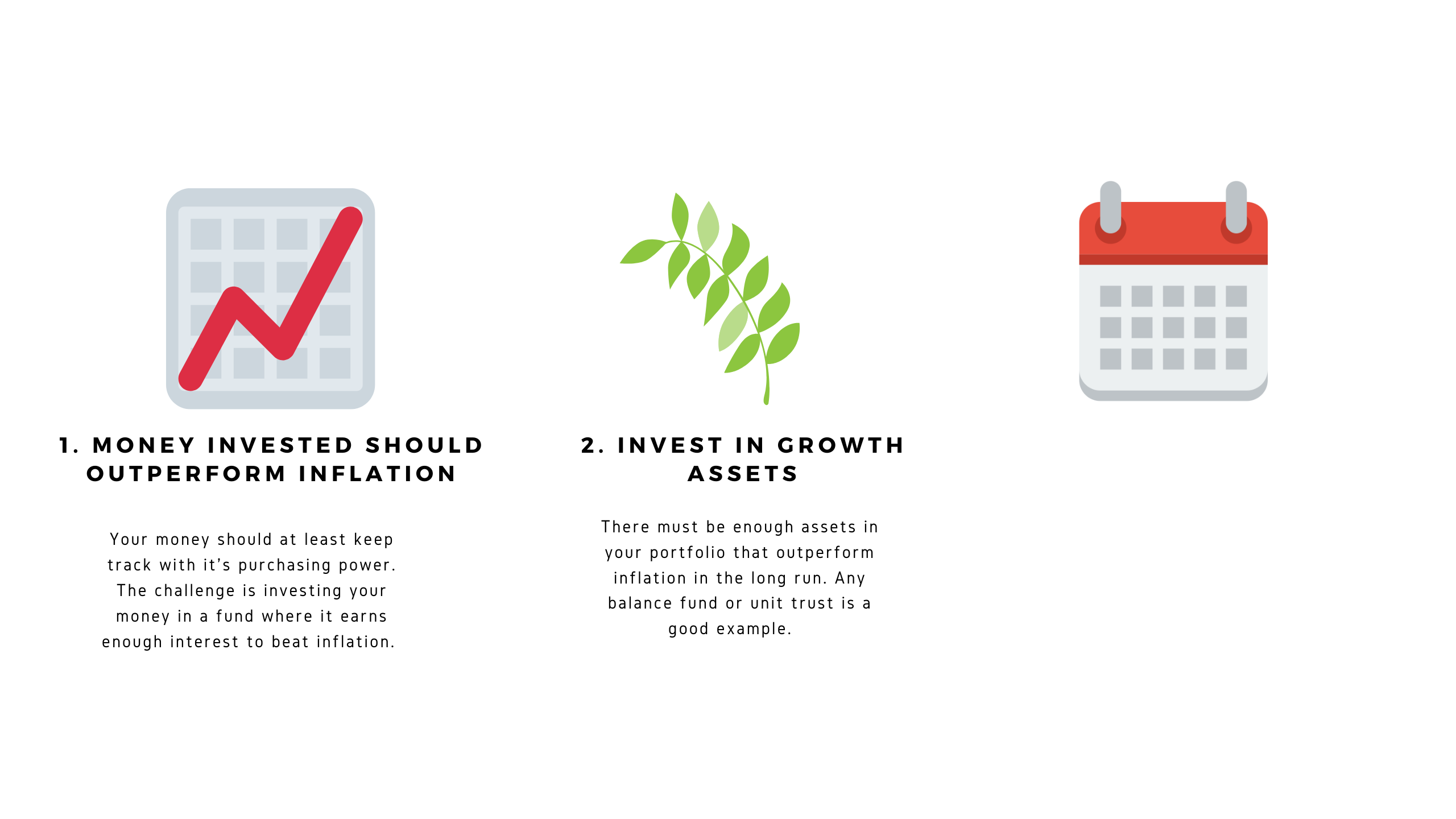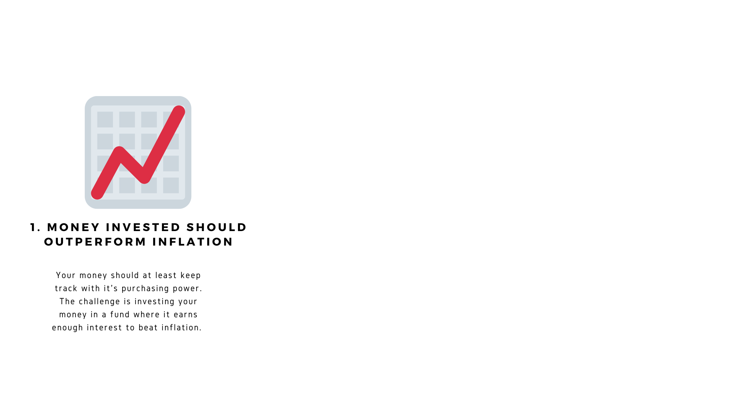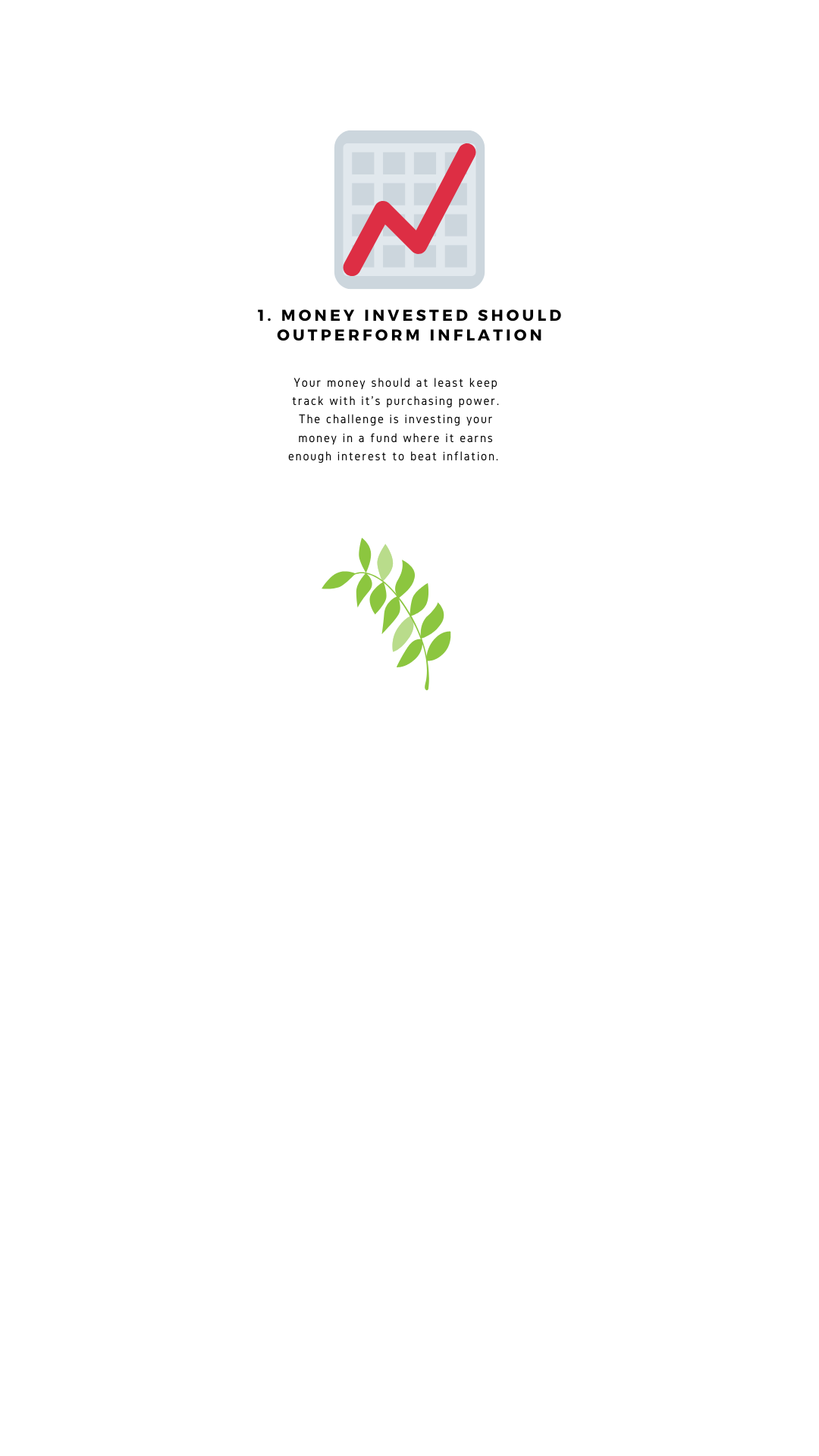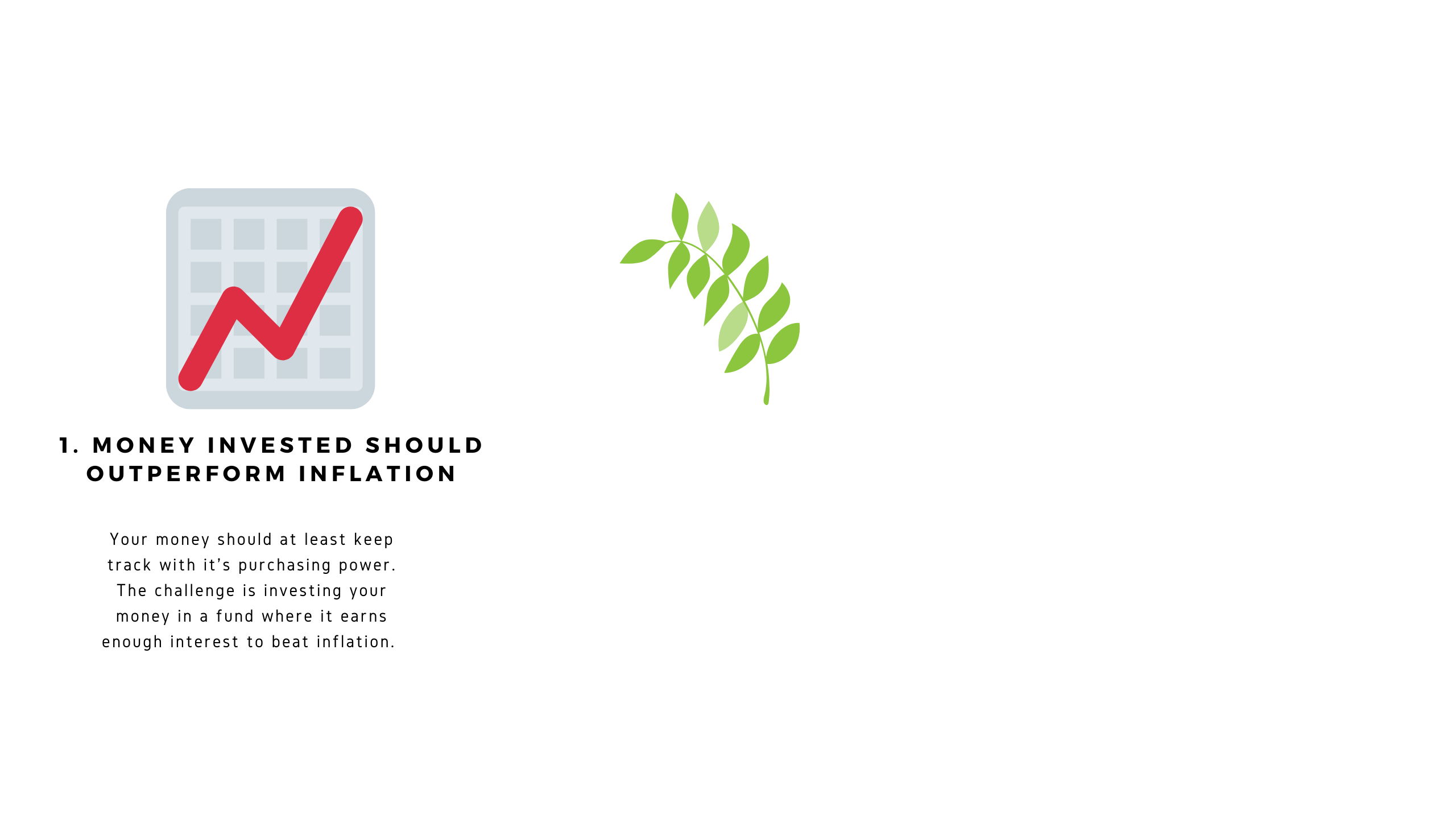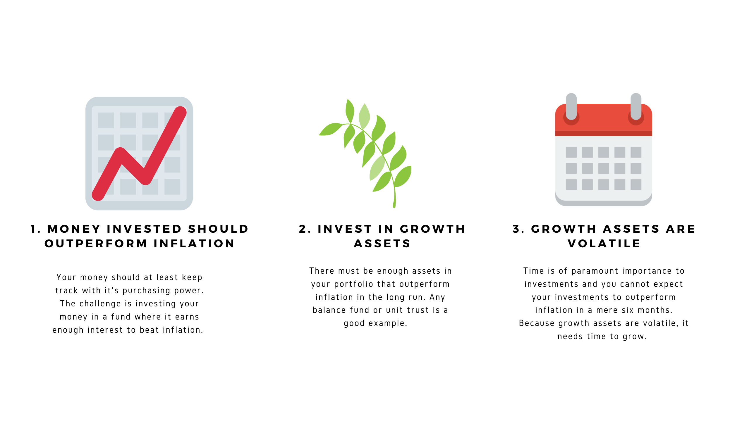 In the long run, inflation is your investments' biggest enemy because it erodes the buying power of your money. "At Momentum, for example, our flagship funds all have a goal to beat inflation by a certain number," Jeanette says.