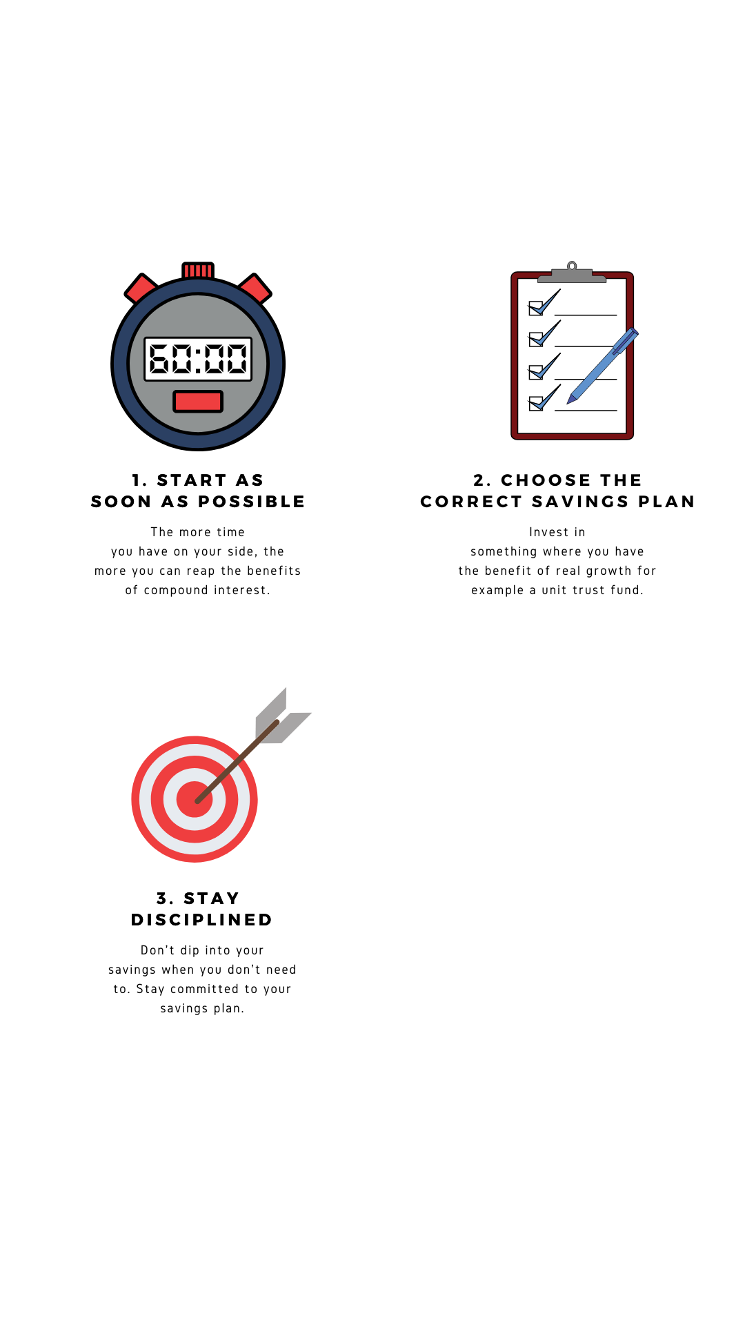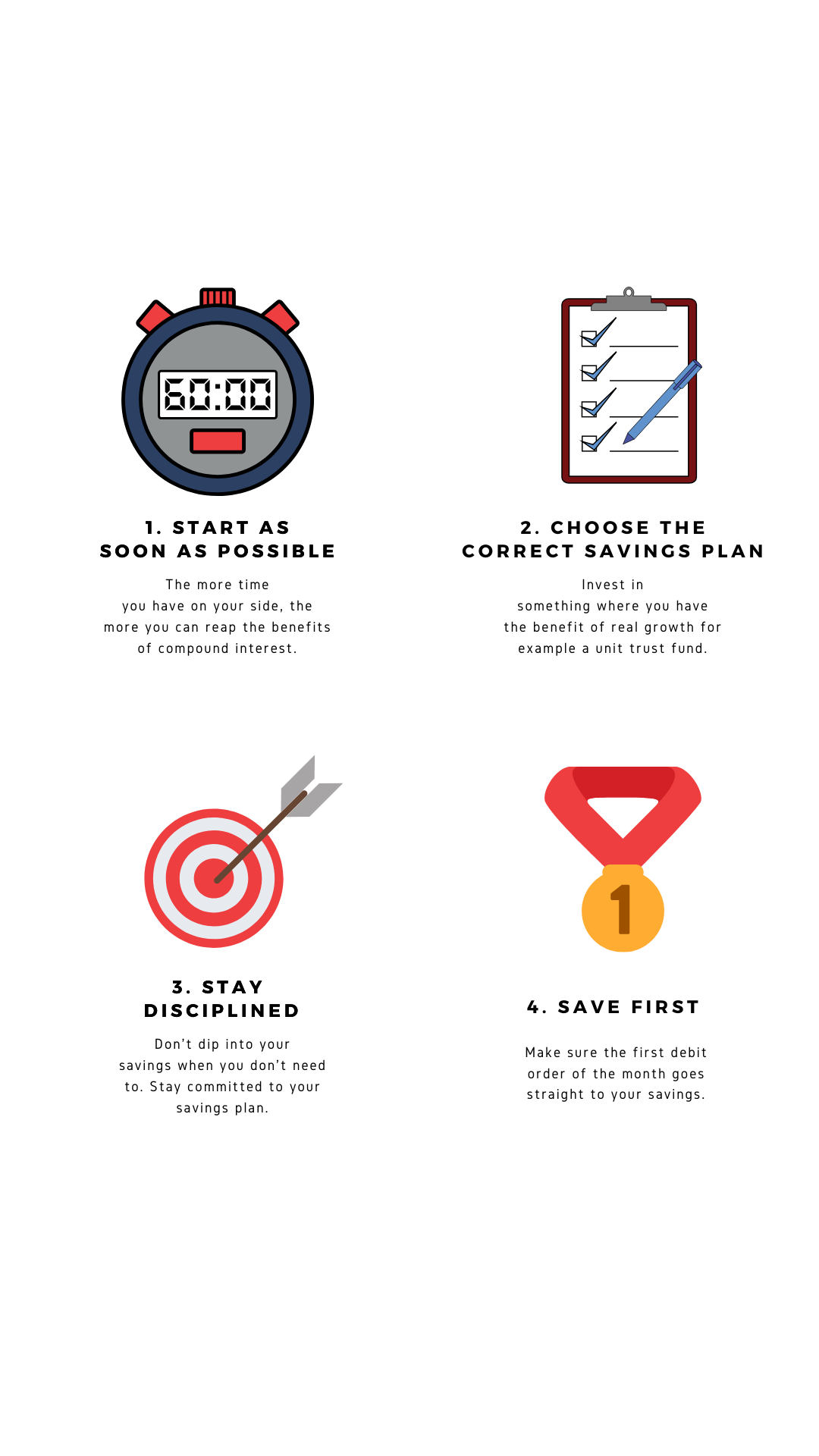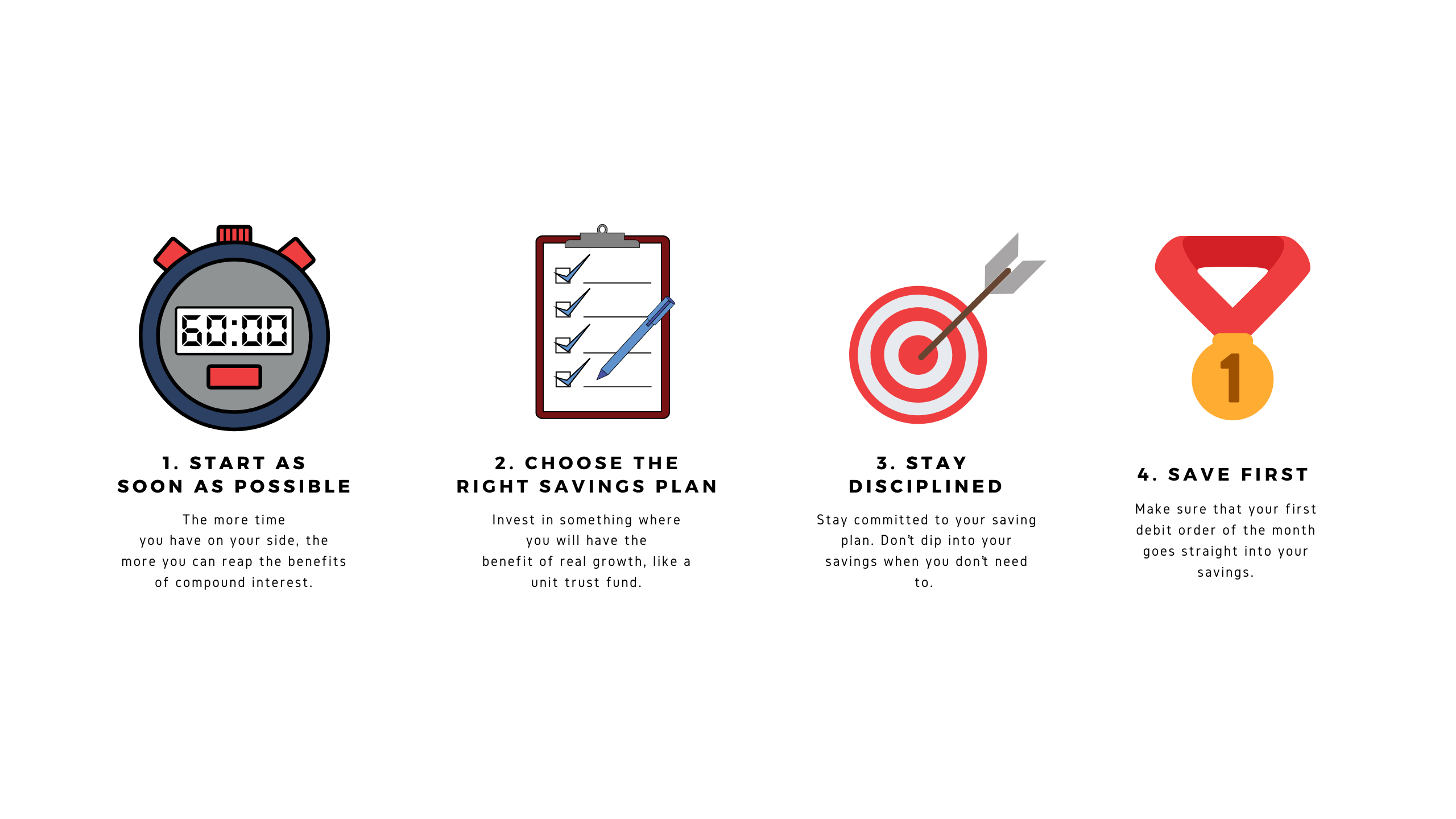 Theo Vorster, CEO of Galileo Capital Holdings, has three tangible tips for saving. “The first,” he says, “is to simply stay within your monthly budget.”