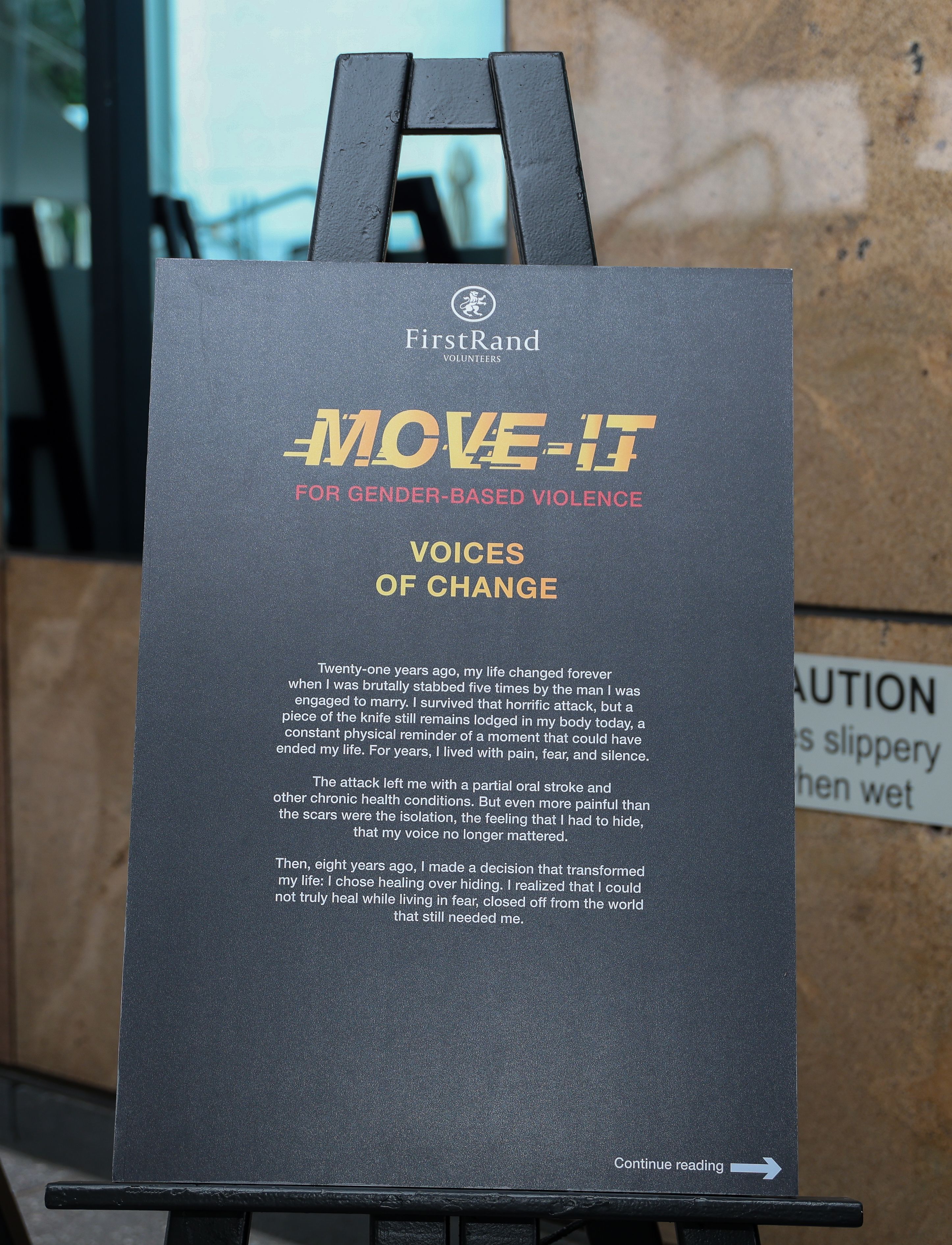 Move-It is more than an initiative; it’s a movement. It’s about turning intention into action with purpose. Through Move-It, our people come together to create meaningful impact, guided by pillars that focus on empowerment, collaboration and change. Move-It is a FirstRand internal movement that turns everyday activity into real impact. For every 30 minutes we move, FirstRand donates R30 to a Move-It initiatives. For 16 Days of Activism, every step we take is a step toward safety, dignity and equality for all.