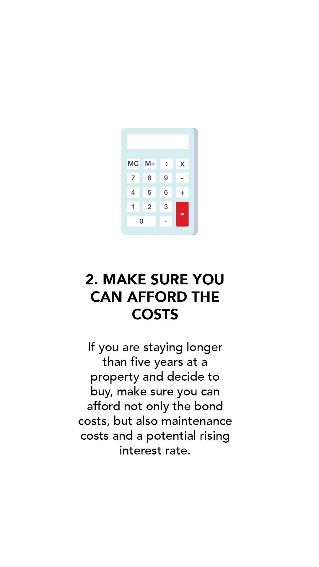 Remember the additional costs - You may be well versed in what, where and how you are buying your property, but remember the additional costs, such as bond registration fees, initiation fees and transfer fees.