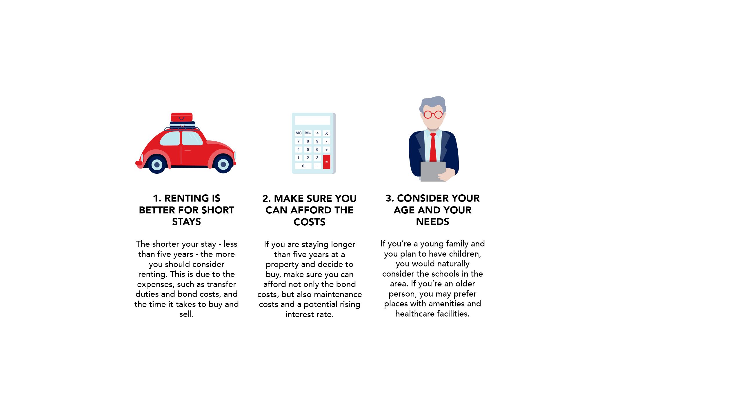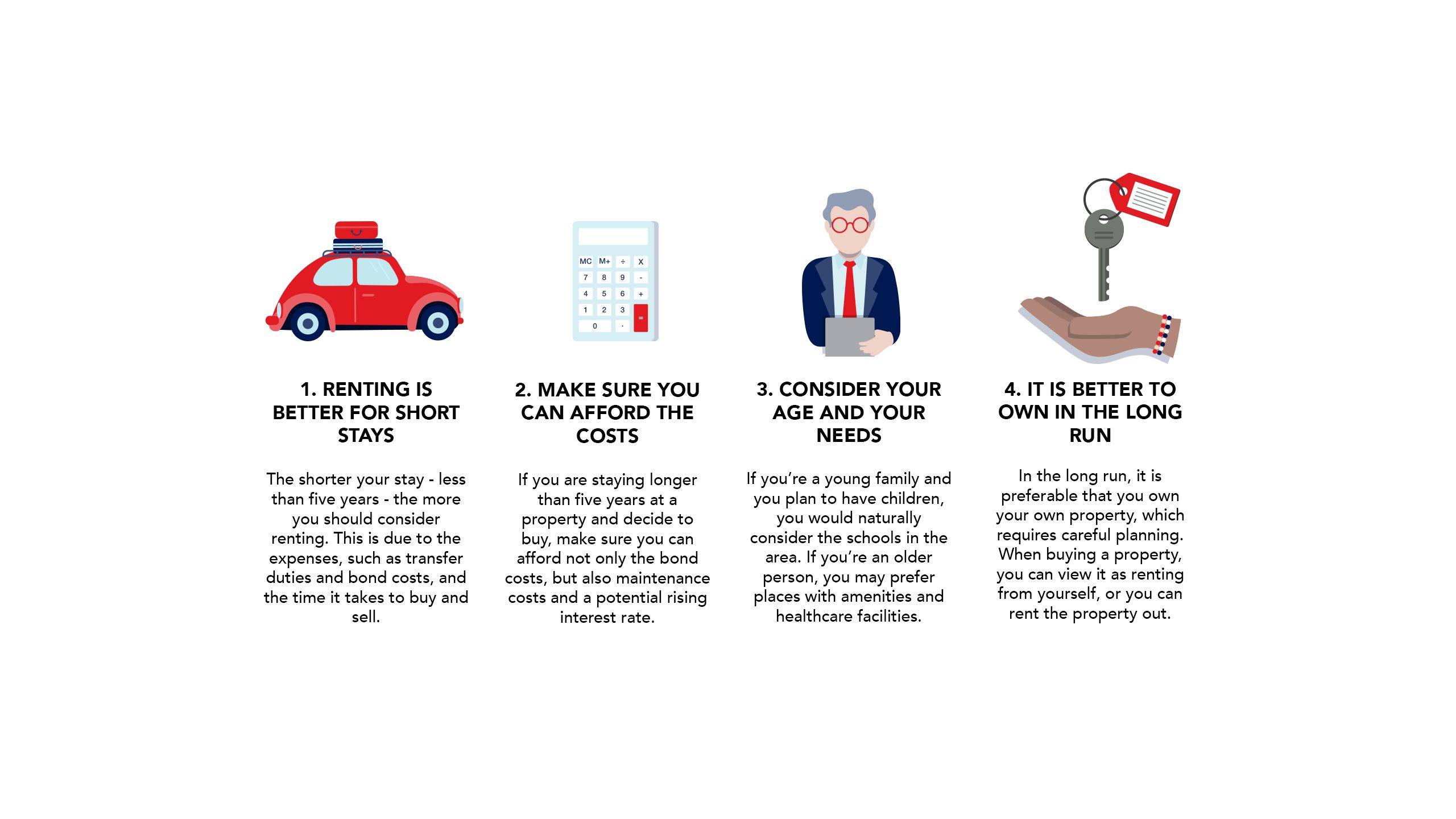 For those seeking advice for property as their primary residence, there are four key things to consider before buying or renting.