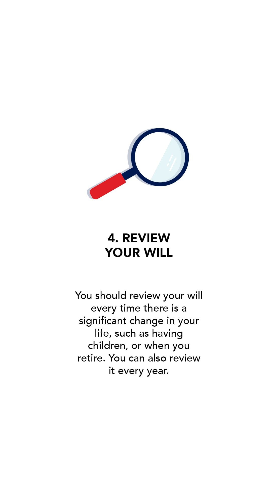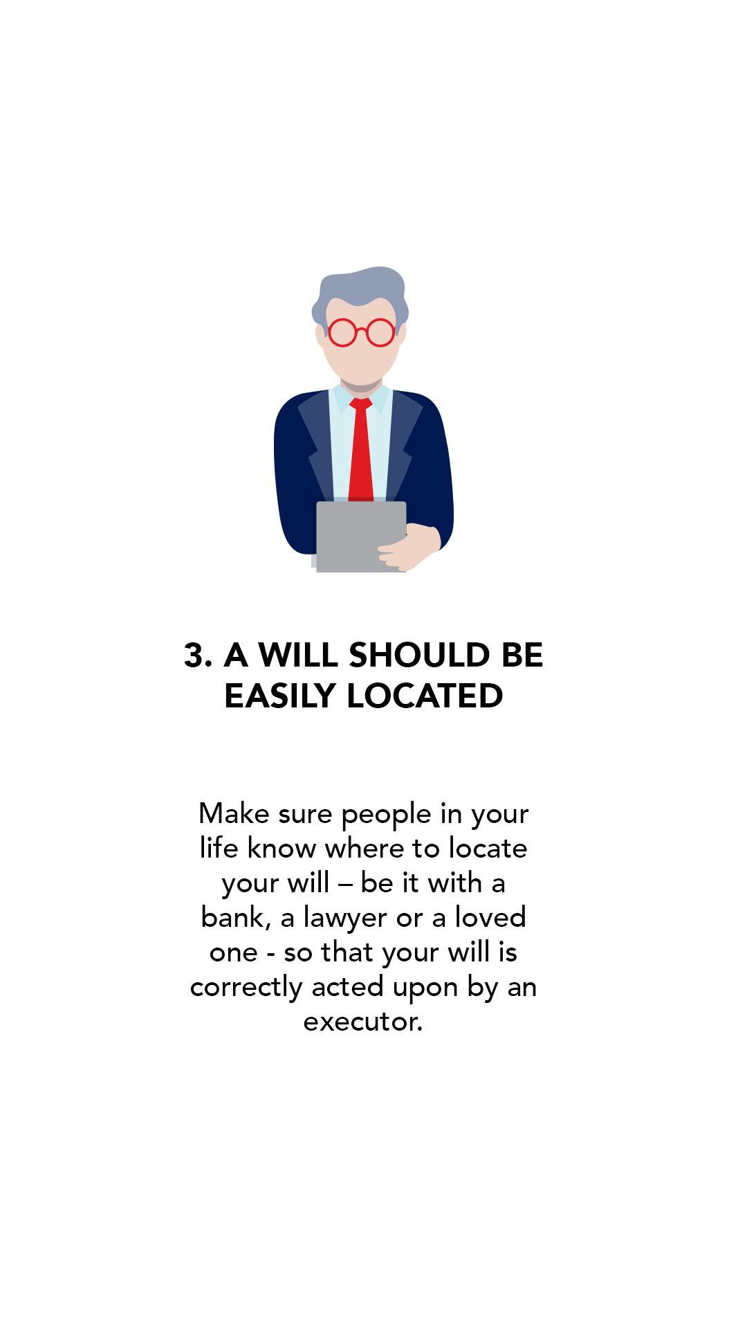 2. Make sure your will is a living document – Many people keep the same Will for 20 or 30 years, but your circumstances can change or your family can grow. Make sure your Will is regularly updated.