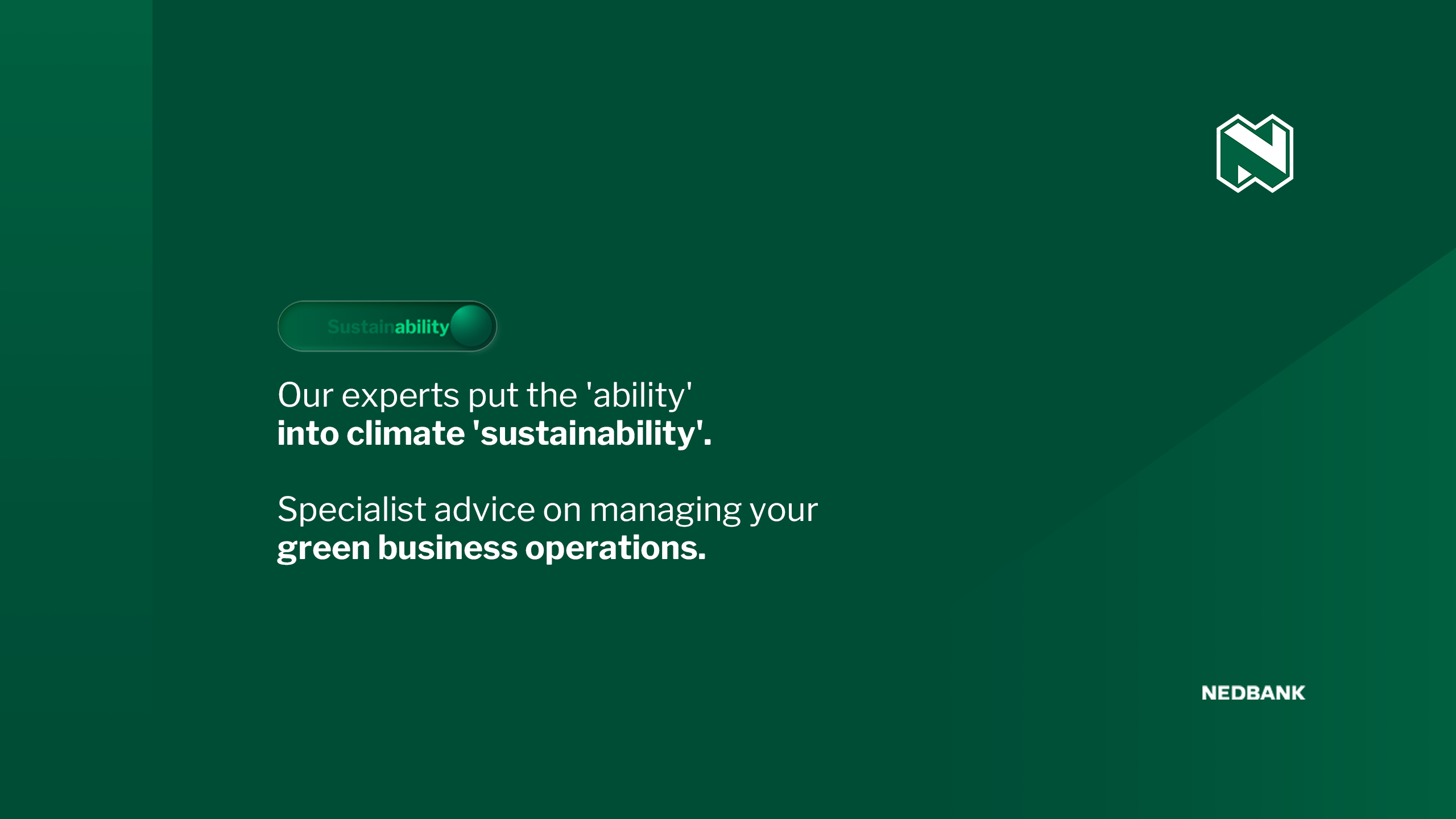 Nedbank Commercial Banking enables our partners with the products and services they need to sustain their businesses in ways that are commercially sound, yet sustainable and supportive of the economy and the people who rely on it for their livelihoods.